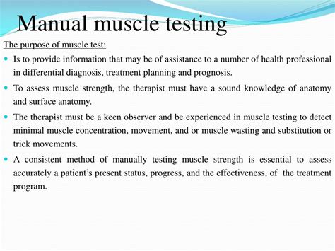 Presently you are looking with regard to an Principles Of Manual Muscle Testing example that we provide here within some type of document formats such as PDF, Doc, Power Point, and in addition images that will make it easier for you to create an Principles Of Manual Muscle Testing yourself. For a better look, you are able to open a few examples below. All the good examples about Principles Of Manual Muscle Testing on this web site, we get from several sources so you can create a better document of your own.If the search you get here does not match what you are searching for, please make use of the research feature that we possess provided here. You are free to download anything that we provide here, investment decision you won't cost you the particular slightest.